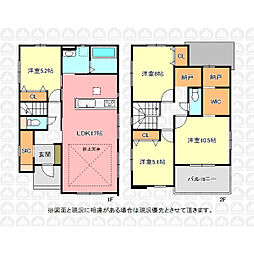 | 間取り | 3LDK(3(4)LDK) 間取り内訳:リビングダイニングキッチン 17帖(1階)・和室 4.5畳(1階)・洋室 10帖(2階)・洋室 7帖(2階) |