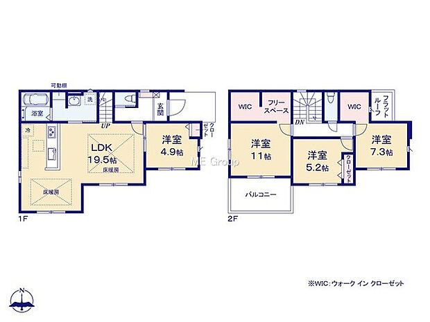暮らしと住まいにPLUSの提案を−エムイーPLUS横浜−陽当たり良好 駐車並列2台可 2部屋にWIC等収納豊富 広々LDKには床暖房 南向きワイドバルコニー 多目的フリースペース有り
