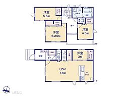 | 間取り | 3LDK 間取り内訳:洋室 6帖(2階)・リビングダイニングキッチン 18.6帖(1階)・洋室 6帖(1階)・洋室 6帖(2階) |
