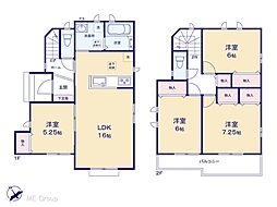 間取り内訳:リビングダイニングキッチン 18.4帖(1階)・洋室 5.7帖(2階)・洋室 4.9帖(2階)・洋室 9.8帖(2階)・洋室 5.2帖(2階)