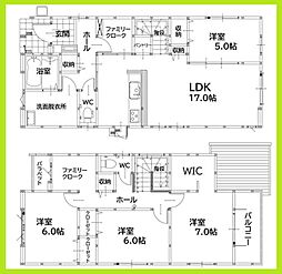 | 間取り | 4LDK 間取り内訳:リビングダイニングキッチン 17帖(1階)・洋室 5帖(1階)・洋室 7帖(2階)・洋室 6帖(2階)・洋室 6帖(2階) |