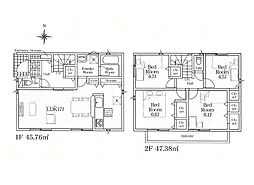 | 間取り | 4LDK 間取り内訳:リビングダイニングキッチン 17帖(1階)・洋室 6.6帖(2階)・洋室 6.1帖(2階)・洋室 4.7帖(2階)・洋室 4.5帖(2階) |