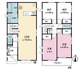 | 間取り | 3LDK 間取り内訳:リビングダイニングキッチン 16.8帖(1階)・洋室 7帖(2階)・洋室 5帖(2階)・洋室 4.7帖(2階) |