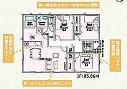 間取り内訳:リビングダイニングキッチン 19.5帖(1階)・洋室 6帖(1階)・洋室 6帖(1階)・洋室 6.5帖(1階)