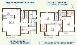 | 間取り | 3LDK(将来4LDKに対応可。) 間取り内訳:リビングダイニングキッチン 16帖(1階)・その他 4.3帖(1階)・洋室 5帖(2階)・洋室 5.2帖(2階)・洋室 10.5帖(2階) |
