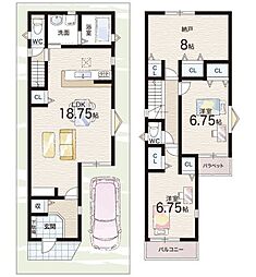 | 間取り | 2SLDK 間取り内訳:リビングダイニングキッチン 16.8帖(1階)・和室 3畳(1階)・洋室 7帖(2階)・洋室 6.7帖(2階)・収納 6帖(2階) |