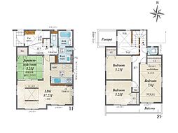 | 間取り | 3LDK 間取り内訳:リビングダイニングキッチン 17帖(1階)・洋室 11.2帖(2階)・洋室 5.3帖(2階)・洋室 5.2帖(2階) |