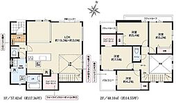 | 間取り | 3LDK 間取り内訳:リビングダイニングキッチン 17帖(1階)・和室 5畳(1階)・洋室 10.5帖(2階)・洋室 7.7帖(2階) |