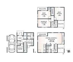 間取り内訳:リビングダイニングキッチン 15帖(1階)・和室 4.5畳(1階)・洋室 7.7帖(2階)・洋室 6帖(2階)・洋室 5.7帖(2階)