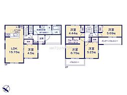 | 間取り | 4LDK 間取り内訳:リビングダイニングキッチン 16帖(1階)・和室 5畳(1階)・洋室 7.5帖(2階)・洋室 6帖(2階)・洋室 5.2帖(2階) |