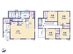| 間取り | 3LDK 間取り内訳:リビングダイニングキッチン 21帖(1階)・洋室 7帖(2階)・洋室 6.5帖(2階)・洋室 6帖(2階) |