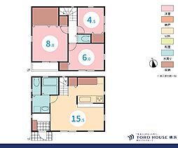 | 間取り | 3LDK 間取り内訳:リビングダイニングキッチン 15.5帖(1階)・洋室 8帖(2階)・洋室 4.5帖(2階)・洋室 6帖(2階) |