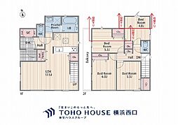 | 間取り | 4SLDK 間取り内訳:リビングダイニングキッチン 17.5帖(1階)・洋室 4.5帖(1階)・洋室 6.5帖(2階)・収納 5.5帖(2階)・洋室 4.5帖(2階)・洋室 6帖(2階) |