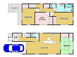 | 間取り | 4LDK 間取り内訳:リビングダイニングキッチン 17帖(1階)・洋室 5.5帖(2階)・洋室 5.2帖(2階)・洋室 5.2帖(2階)・洋室 6.6帖(2階) |