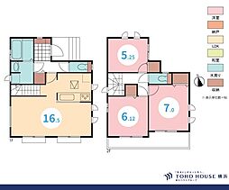 間取り内訳:リビングダイニングキッチン 18.1帖(1階)・洋室 5.2帖(2階)・洋室 6.9帖(2階)・洋室 5.7帖(2階)・洋室 5帖(2階)