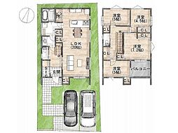 | 間取り | 3LDK 間取り内訳:リビングダイニングキッチン 15帖(1階)・洋室 7.2帖(2階)・洋室 5.2帖(2階)・洋室 5.2帖(2階) |
