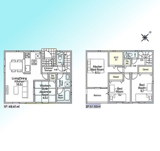 間取り内訳:リビングダイニングキッチン 16.5帖・和室 4.5畳・洋室 8.5帖・洋室 5帖・洋室 6帖