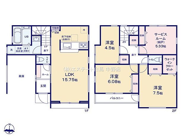 | 間取り | 4LDK 間取り内訳:リビングダイニングキッチン 15.7帖・洋室 7.5帖・洋室 6帖・洋室 5.3帖・洋室 4.5帖 |