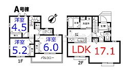 | 間取り | 4LDK 間取り内訳:リビングダイニングキッチン 13帖(1階)・洋室 5帖(1階)・洋室 4.8帖(2階)・洋室 5.1帖(2階)・洋室 6帖(2階) |