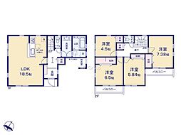 間取り内訳:リビングダイニングキッチン 20帖(1階)・洋室 5.3帖(2階)・洋室 7.5帖(2階)・洋室 5.2帖(2階)・洋室 4.5帖(2階)
