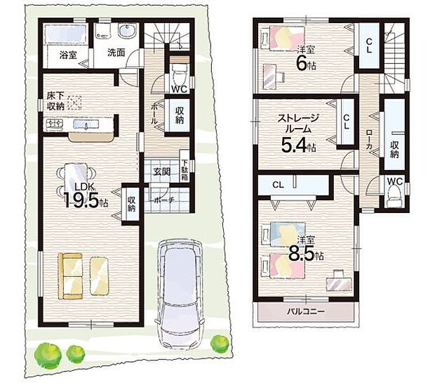 • 「建築条件付き土地」の「建物プラン例」は、土地購入者の設計プランの一例であり、プランの採用可否は任意です。