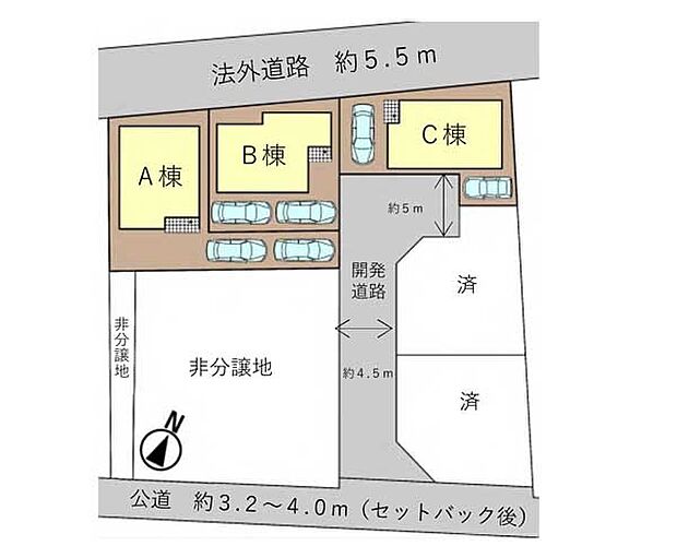 | 土地面積 | 106.11m2~130.77m2<私道負担面積142m2 私道負担割合1/6> | ||