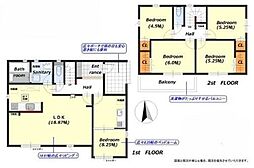 | 間取り | 4LDK 間取り内訳:リビングダイニングキッチン 16帖(1階)・和室 4.5畳(1階)・洋室 5.2帖(2階)・洋室 6帖(2階)・洋室 7帖(2階) |