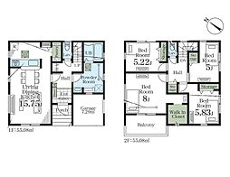 | 間取り | 4LDK 間取り内訳:リビングダイニングキッチン 15.7帖(1階)・洋室 8帖(2階)・洋室 5.8帖(2階)・洋室 5.2帖(2階)・洋室 5帖(2階) |