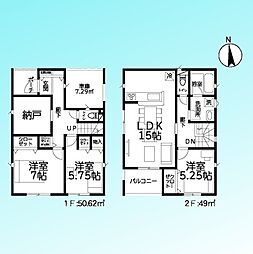 | 間取り | 3LDK 間取り内訳:リビングダイニングキッチン 19帖(1階)・洋室 8帖(2階)・洋室 6帖(2階)x2 |