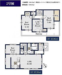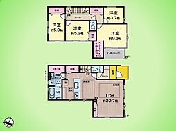 間取り内訳:リビングダイニングキッチン(1階)・洋室 6.5帖(1階)・洋室 6.5帖(2階)・洋室 6帖(2階)・洋室 5.2帖(2階)