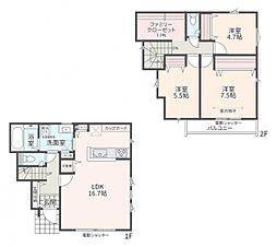 | 間取り | 3LDK 間取り内訳:リビングダイニングキッチン 16.7帖(1階)・洋室 4.7帖(2階)・洋室 5.5帖(2階)・洋室 7.5帖(2階) |