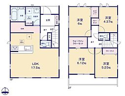 | 間取り | 4SLDK 間取り内訳:リビングダイニングキッチン 15.7帖(1階)・和室 4.5畳(1階)・洋室 8.2帖(2階)・洋室 5.2帖(2階)x2・収納 3帖(2階) |