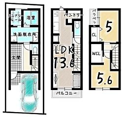| 間取り | 2LDK 間取り内訳:リビングダイニングキッチン 13.6帖(2階)・洋室 5.6帖(3階)・洋室 5帖(3階) |
