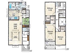 | 間取り | 4LDK 間取り内訳:リビングダイニングキッチン 16.2帖(1階)・和室 6畳(1階)・洋室 9帖(2階)・洋室 6.5帖(2階)・洋室 6.2帖(2階) |