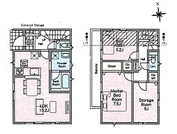 | 間取り | 2SLDK(バルコニーあり) 間取り内訳:リビングダイニングキッチン 15.2帖(1階)・洋室 7.5帖(2階)・洋室 5.2帖(2階)・収納 5帖(2階) |