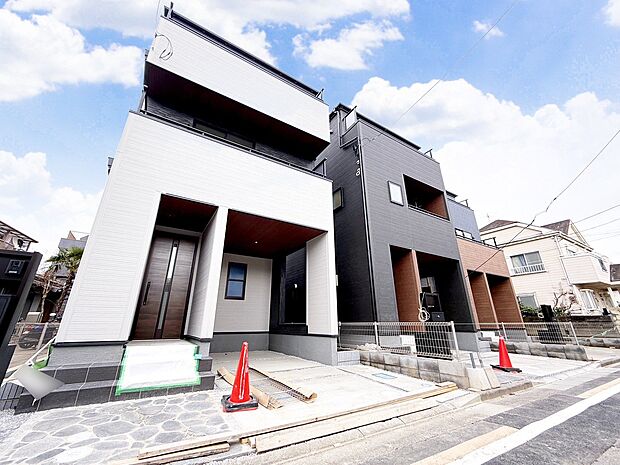 • 左が当物件。6m公道に面したカースペースはビルトインガレージを採用しました。(令和8年2月 撮影)