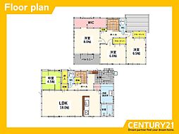 | 間取り | 4LK 間取り内訳:洋室 8帖・洋室 6帖・洋室 6帖・洋室 3.5帖・リビングダイニングキッチン 20帖 |