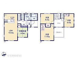 | 間取り | 3LDK 間取り内訳:リビングダイニングキッチン 16帖(1階)・洋室 8帖(2階)・洋室 6.2帖(2階)・洋室 5.2帖(2階) |