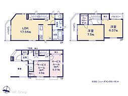 間取り内訳:収納 4.5帖(1階)・収納 5.3帖(1階)・リビングダイニングキッチン 17.6帖(2階)・洋室 7.5帖(3階)・洋室 6.3帖(3階)