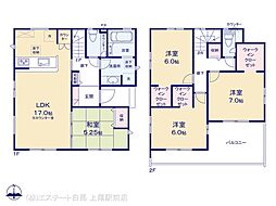 間取り内訳:リビングダイニングキッチン 17帖(1階)・和室 5.2畳(1階)・洋室 7帖(2階)・洋室 6帖(2階)x2