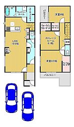 間取り内訳:リビングダイニングキッチン 19.5帖(1階)・洋室 8.5帖(2階)・洋室 6帖(2階)