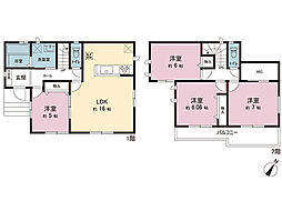 | 間取り | 4LDK 間取り内訳:リビングダイニングキッチン 17帖(1階)・和室 4.5畳(1階)・洋室 7帖(2階)・洋室 5.2帖(2階)・洋室 5.2帖(2階) |