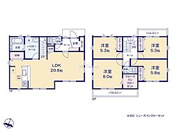 | 間取り | 4LDK 間取り内訳:リビングダイニングキッチン 17.5帖(1階)・和室 4.5畳(1階)・洋室 5.2帖(2階)・洋室 5.2帖(2階)・洋室 7帖(2階) |