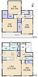 間取り内訳:リビングダイニングキッチン 15.3帖(1階)・洋室 5.2帖(1階)・洋室 7帖(2階)・洋室 6.1帖(2階)・洋室 6帖(2階)