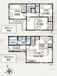 | 間取り | 4LDK 間取り内訳:リビングダイニングキッチン 17帖(1階)・洋室 7.7帖(2階)・洋室 4.5帖(2階)・洋室 4.5帖(2階)・洋室 4.5帖(2階) |