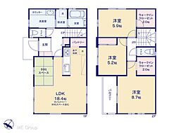 | 間取り | 4LDK 間取り内訳:リビングダイニングキッチン 23.2帖(1階)・洋室 7.5帖(2階)・洋室 5.9帖(2階)・洋室 5.7帖(2階)・洋室 3帖(2階) |