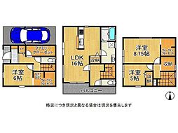 | 間取り | 3LDK 間取り内訳:リビングダイニングキッチン 16帖・洋室 8.7帖・洋室 6帖・洋室 5帖 |