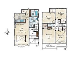 | 間取り | 4LDK 間取り内訳:リビングダイニングキッチン 19帖(1階)・洋室 7.5帖(2階)・洋室 5.2帖(2階)・洋室 5.2帖(2階)・洋室 4.5帖(2階) |