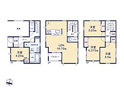 | 間取り | 3LDK 間取り内訳:洋室 7.5帖(1階)・リビングダイニングキッチン 17.4帖(2階)・洋室 3.7帖(3階)x2 |