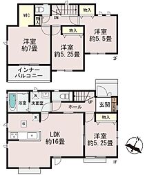 | 間取り | 4LDK 間取り内訳:リビングダイニングキッチン 16帖(1階)・洋室 4.5帖(1階)・洋室 7帖(2階)・洋室 6帖(2階)・洋室 5帖(2階) |